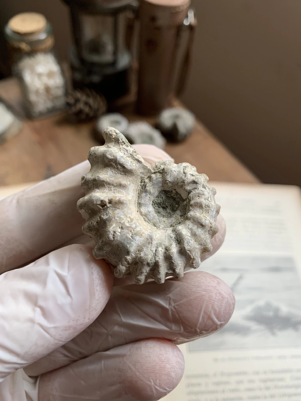 Douvilleiceras mammillatum é uma espécie icónica de amonite fóssil, frequentemente encontrada em Madagáscar. Estes fósseis são famosos pelas suas conchas espessas e robustas, cobertas por costelas proeminentes e tubérculos (pequenos inchaços ou espinhos), o que lhes valeu o apelido local de "amonites pneu de trator".Características Principais