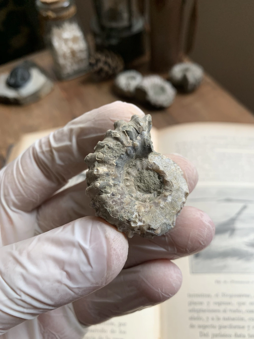 Douvilleiceras mammillatum é uma espécie icónica de amonite fóssil, frequentemente encontrada em Madagáscar. Estes fósseis são famosos pelas suas conchas espessas e robustas, cobertas por costelas proeminentes e tubérculos (pequenos inchaços ou espinhos), o que lhes valeu o apelido local de "amonites pneu de trator".Características Principais